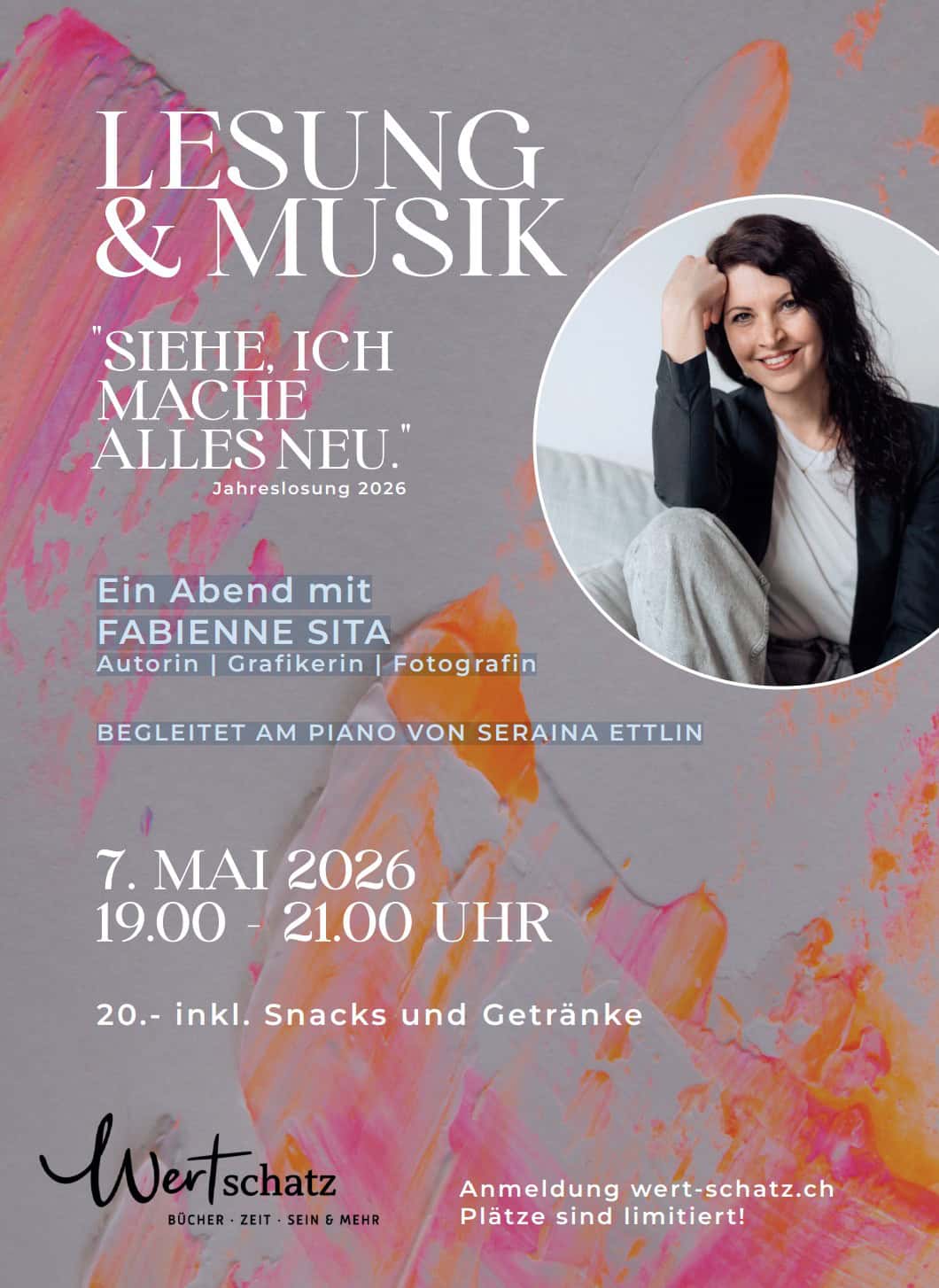 Ein inspirierender Abend mit viel Tiefe, Wärme und geistlichen Impulsen, die nachwirken. LESUNG & MUSIK FABIENNE SITA Autorin | Grafikerin | Fotografin BEGLEITET AM PIANO VON SERAINA ETTLIN Hier gehts zur Anmeldung [...]
